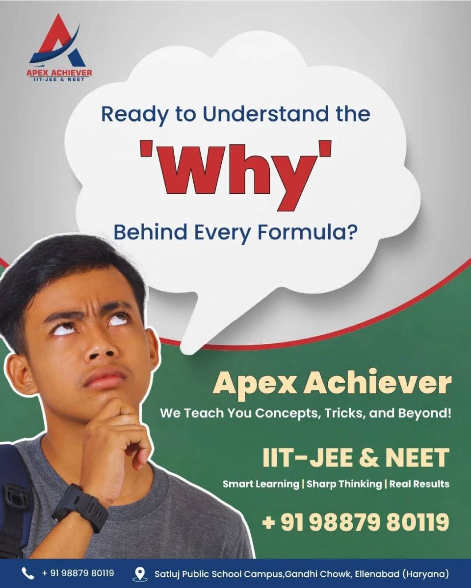 Apex Achievers is one of the leading coaching institutes in Sirsa, Haryana, dedicated to preparing students for competitive exams like IIT-JEE and NEET. With a mission to empower young minds and build strong academic foundations, we ensure every student gets personalized attention and top-quality guidance.